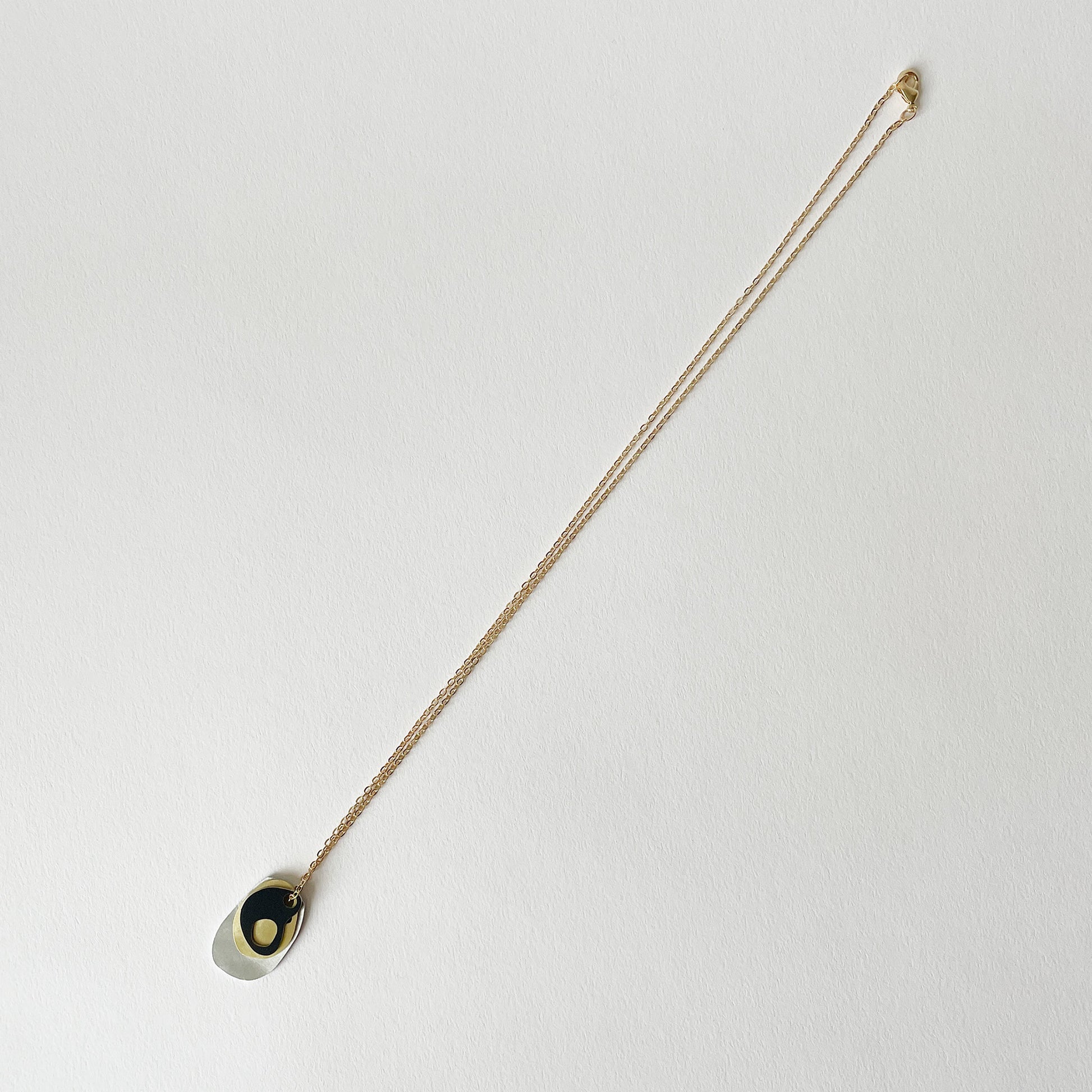 Crafted using charms in brass, matte black and silver aluminium, this delicate necklace has a gold plated diamond cut trace chain and is presented in a beautiful Tom Pigeon white sliding box.