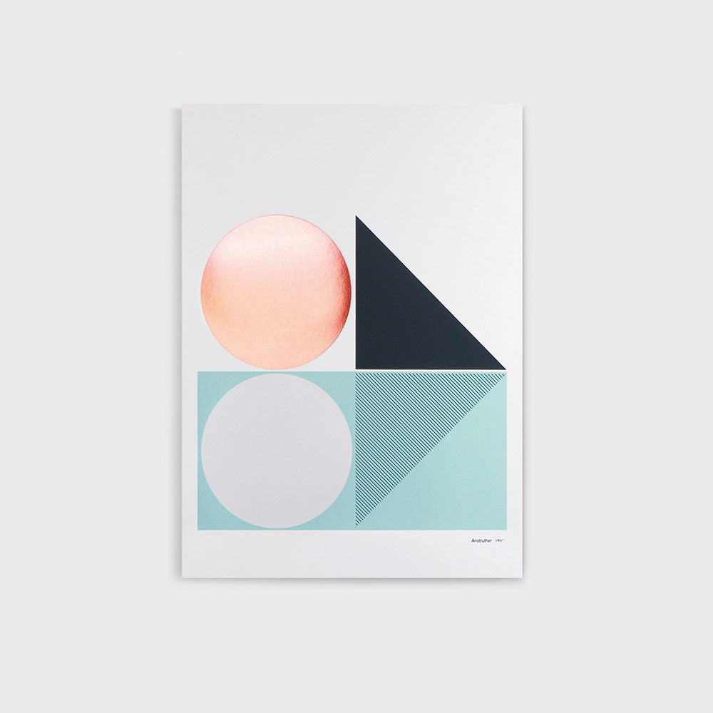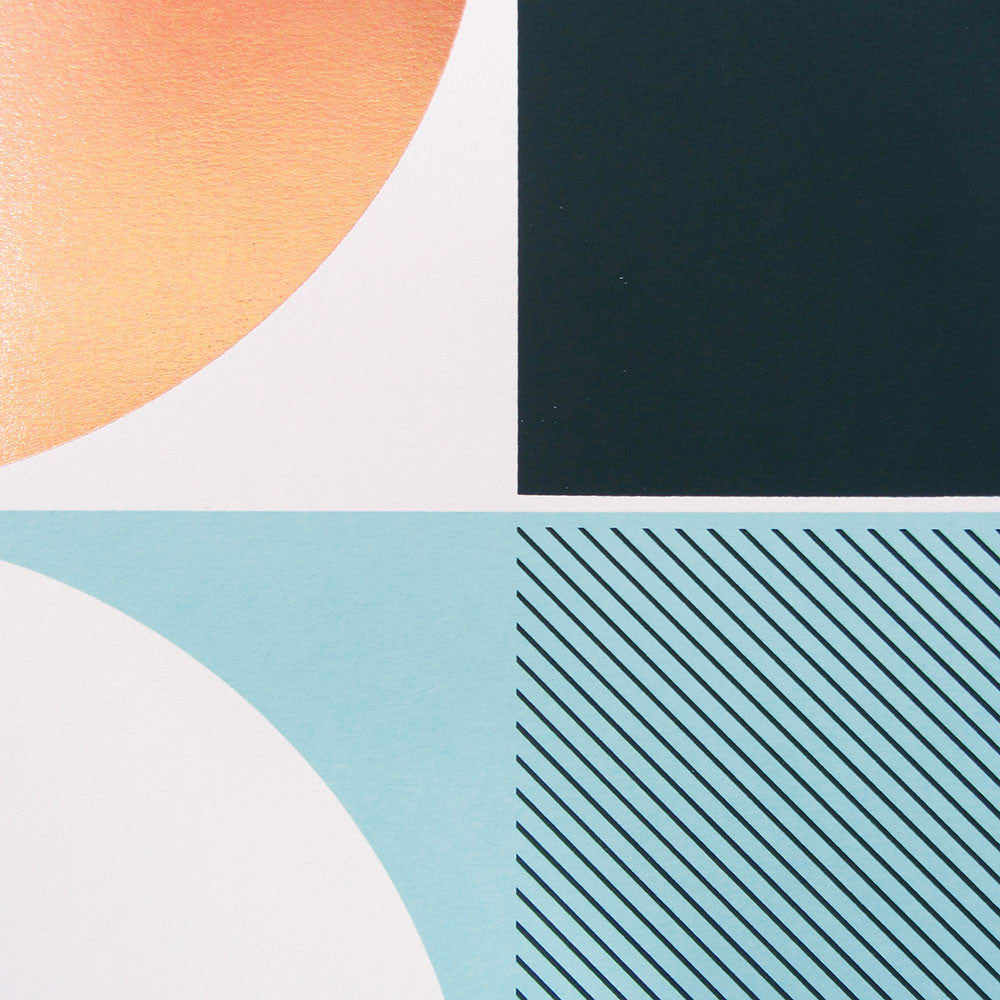 ‘Anstruther’ is an open edition signed A2 screen print, printed in Spearmint and Charcoal Grey with copper metallic foil on heavyweight 270gsm GFSmith Colorplan bright white, 'White Frost' paper.