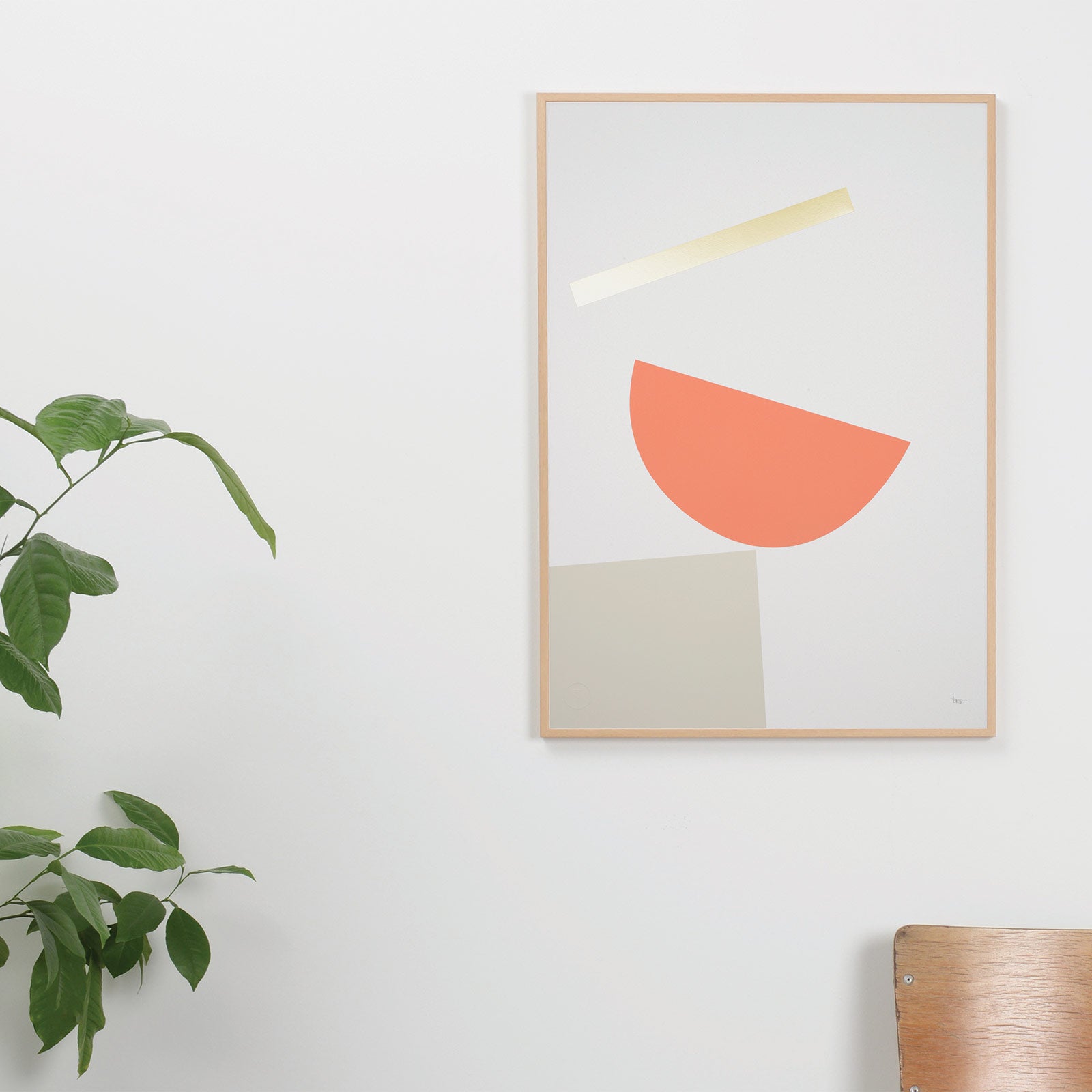 Balance 1 is an open edition signed A2 screen print. Printed in coral pink and grey with brass foil detail on beautifully speckled heavyweight 200gsm Favini Corn Crush paper.